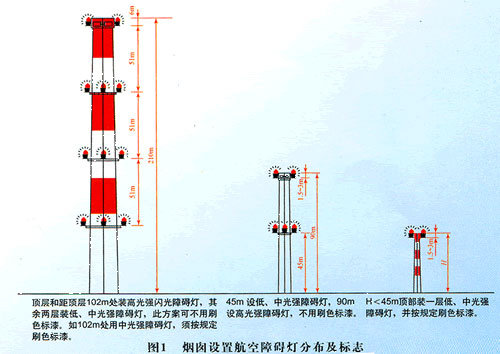 1. 國際民用航空公約《附件十四》,針對煙囪尤其是高聳煙囪設置障礙燈有完善的技術要求和嚴格的規定。國家民航局制定的《MHJ1-85》飛行區技術標準,參照了此標準。